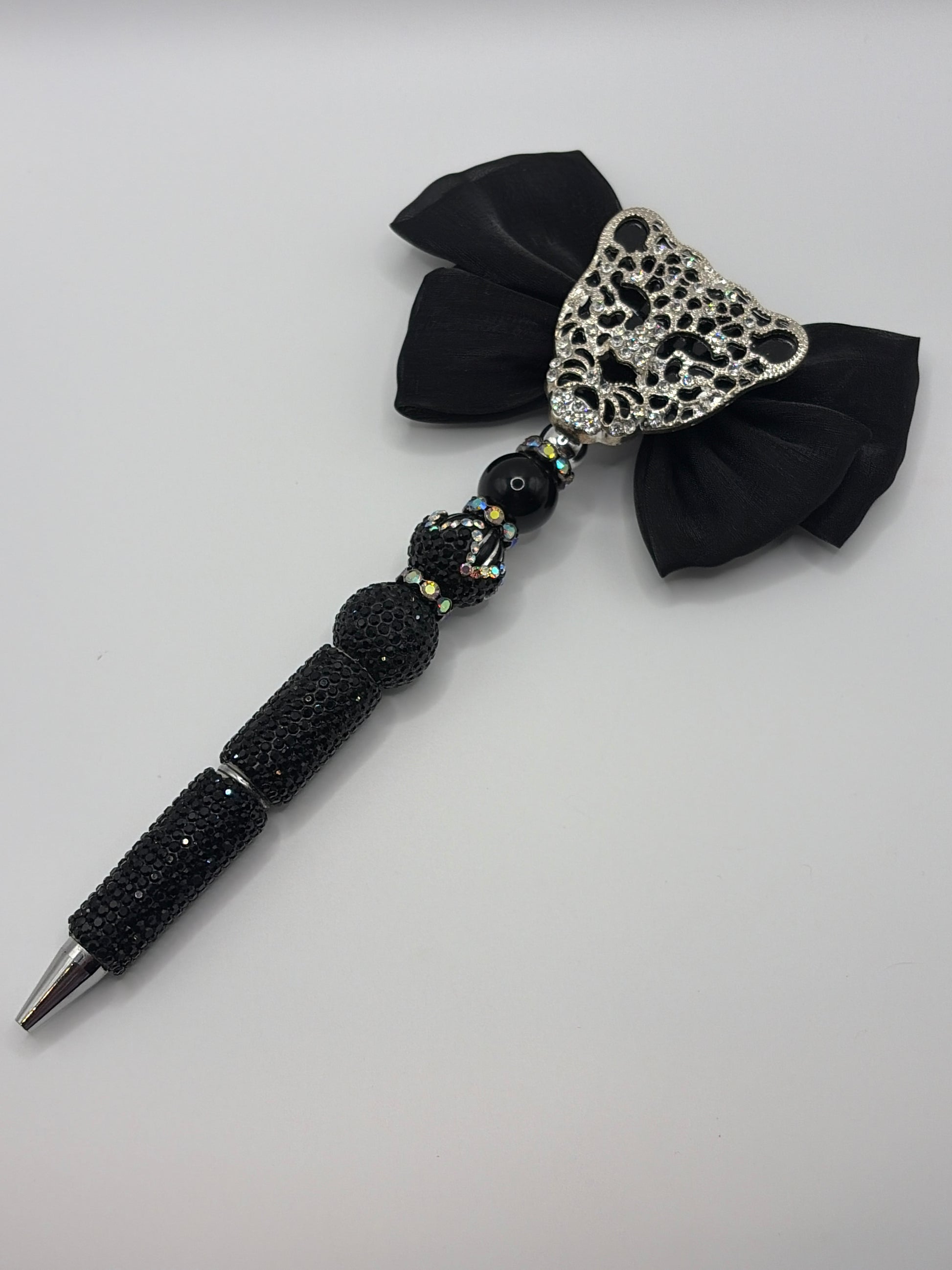 Silver Leopard with Black Bow Rhinestone PEN